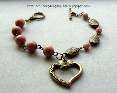 Materials: Rhodonite Gemstone,bead caps, love charm, toggle